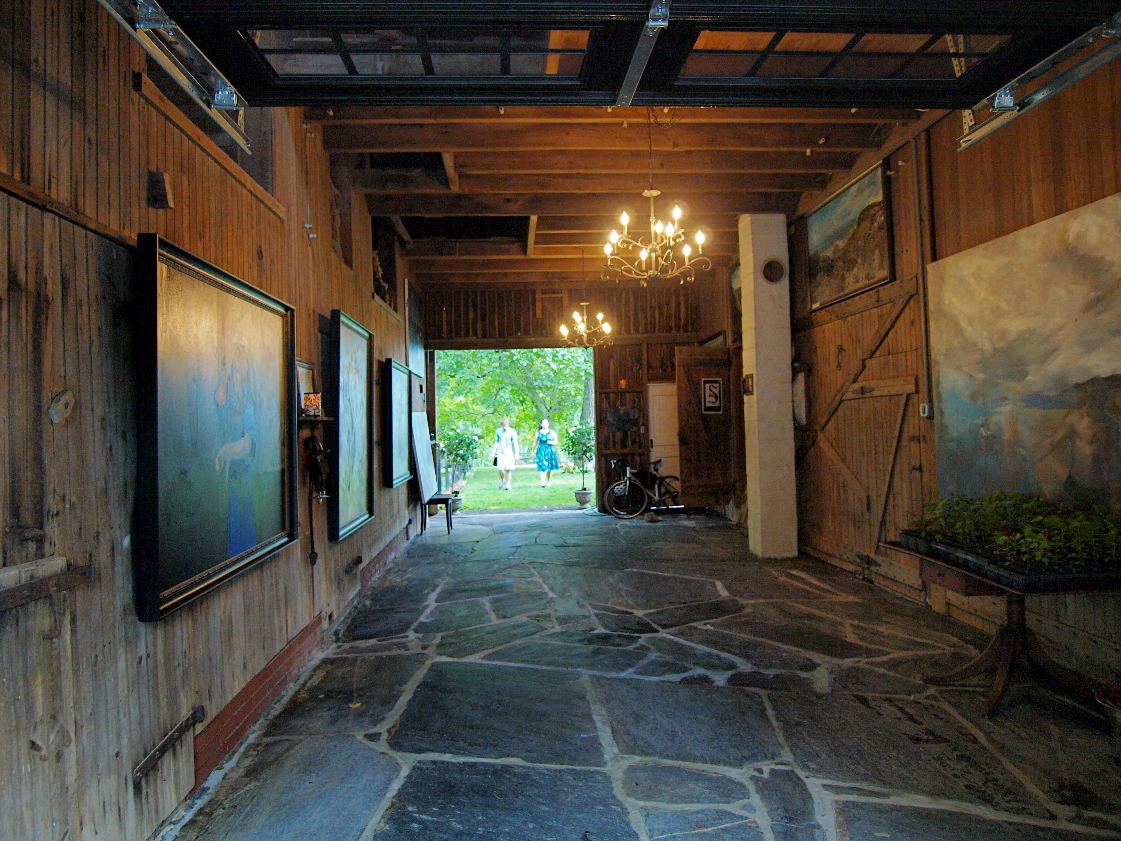 The Barn Aisle, Decked out with Sarah's paintings for her wedding