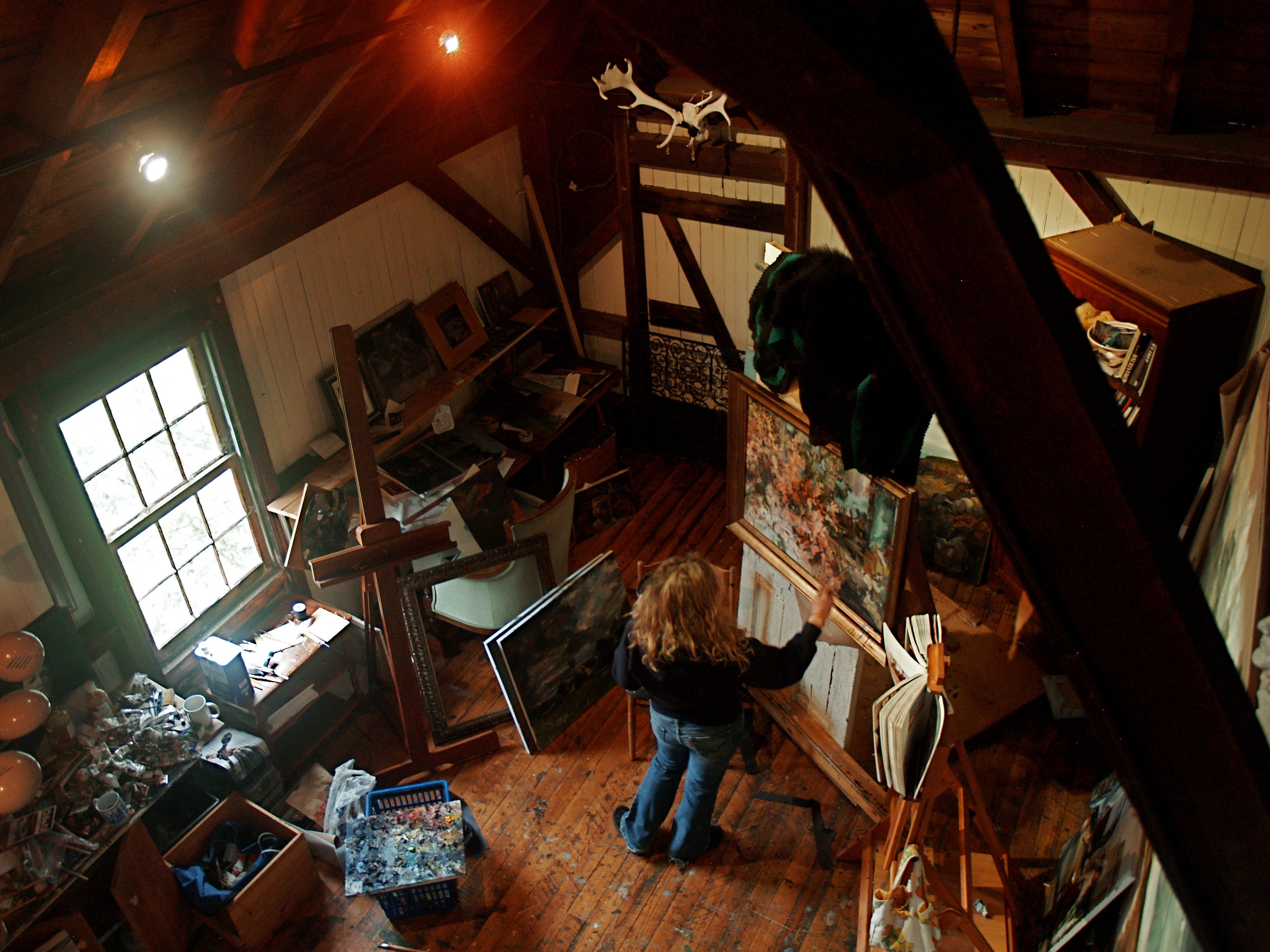 Here are a few photos of Sarah painting in the loft of our parents’ barn in Strasburg, which she converted into a studio. Sarah now lives in Germany, but this loft will always be a special place for all of us.