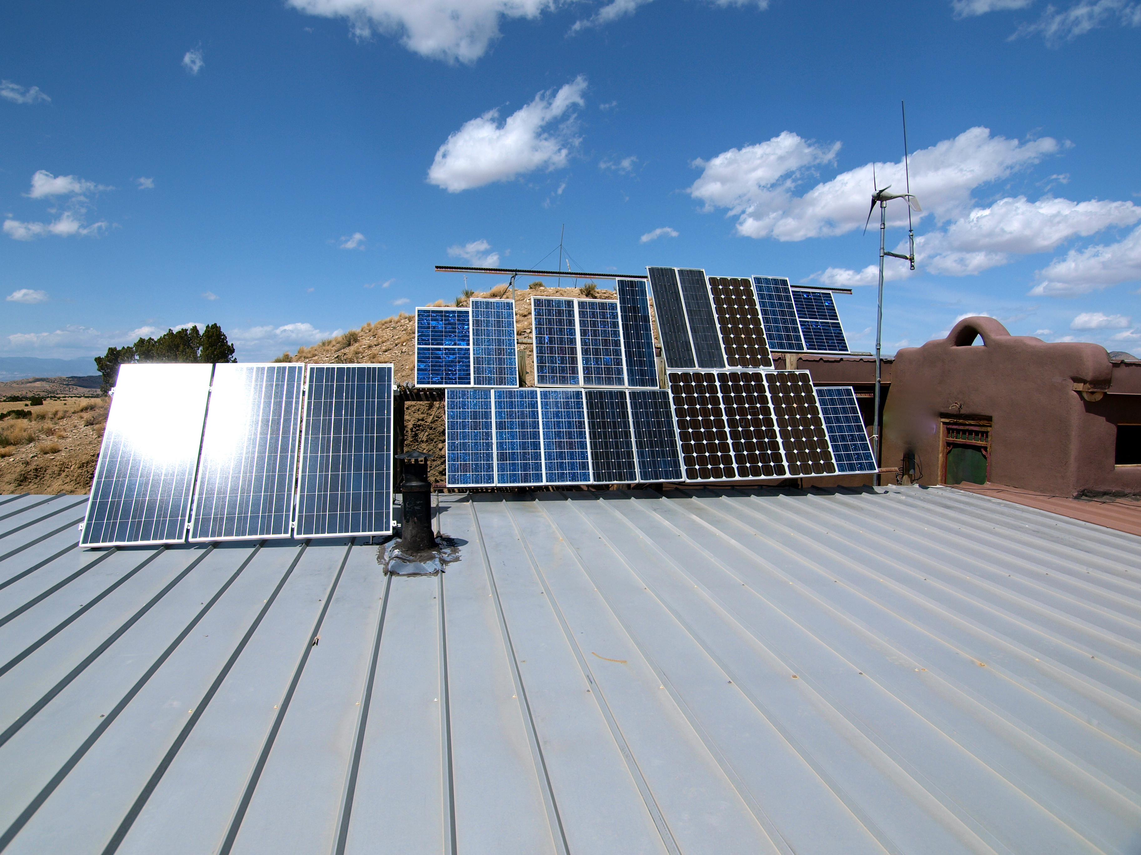 The Earthship’s solar array and rainwater catchment roof.